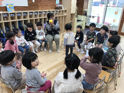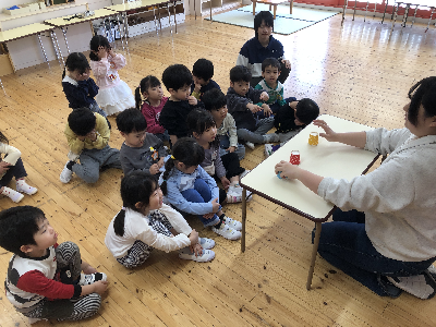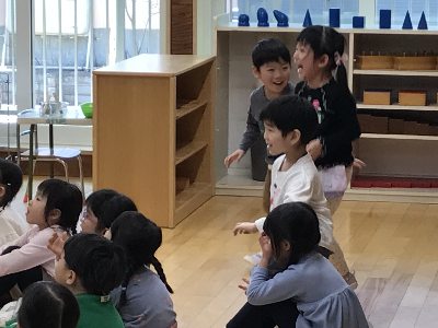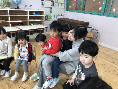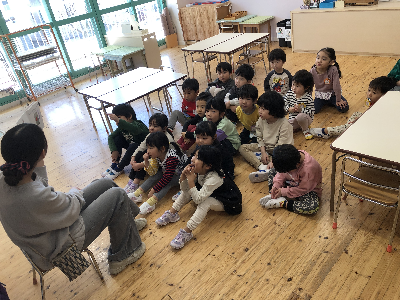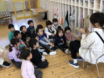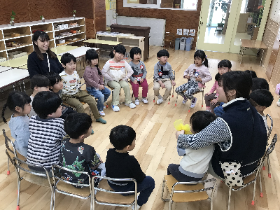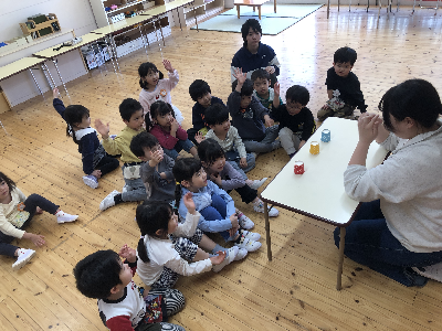 トイレに行ったり、おむつを替えてからやっとみんなが揃って、クラスの時間…♪