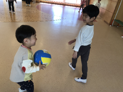 日中の園庭は温かく、ジャンバーがいらない子もいるほどの気温です。