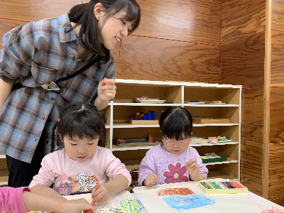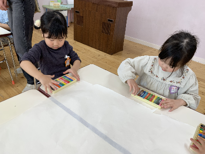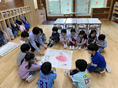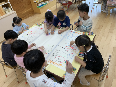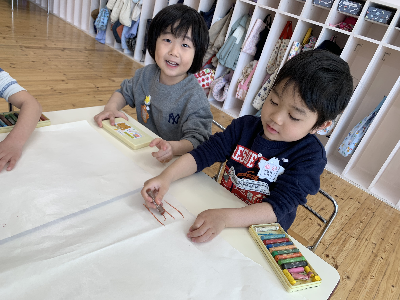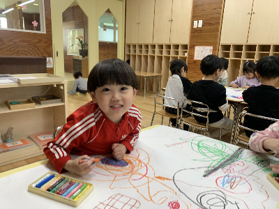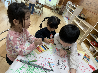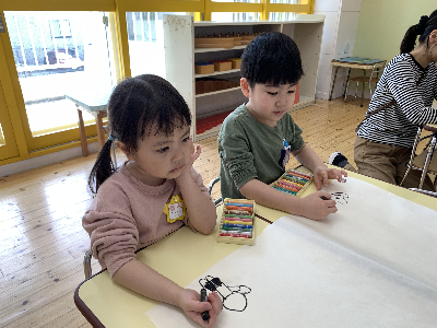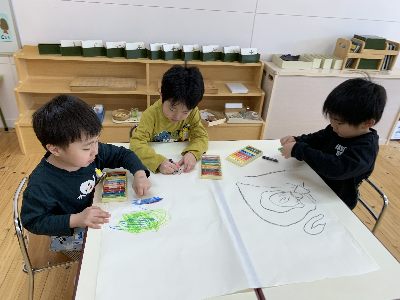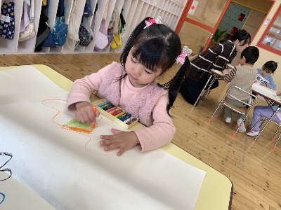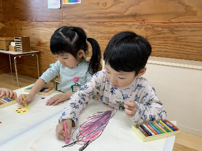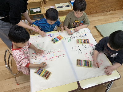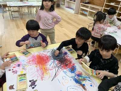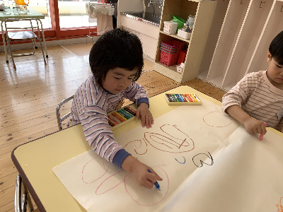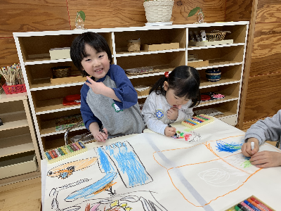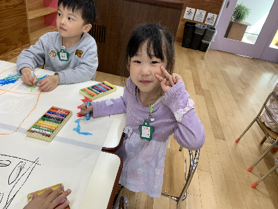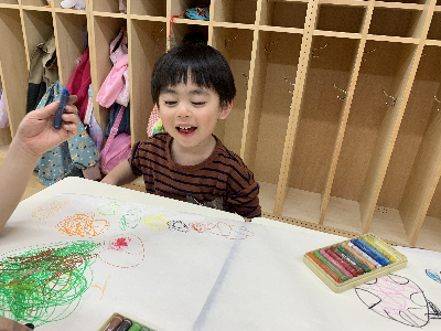 のびのびと大きな紙に自由に描いていましたよ。