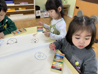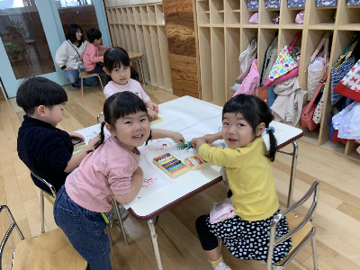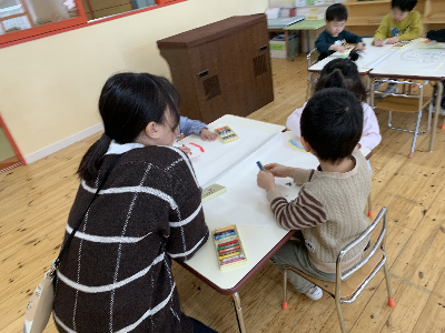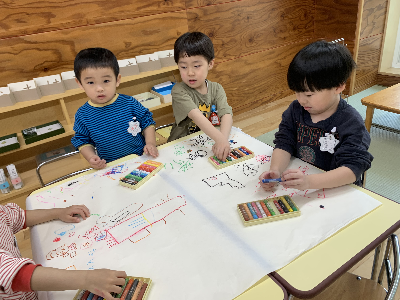 この日はクレヨンを出して、大きな紙に絵を描いて楽しみました!