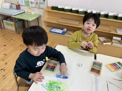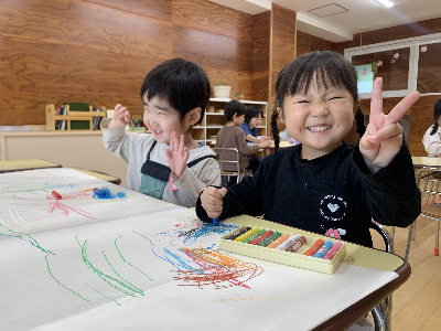 「こんなの描いた~!」「クレヨン楽しい~!」と嬉しそうでした。