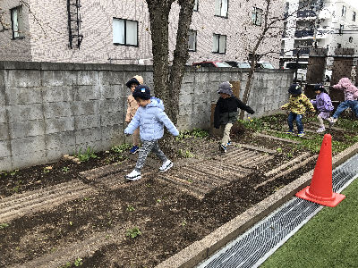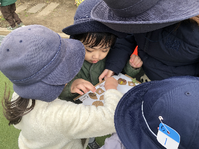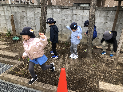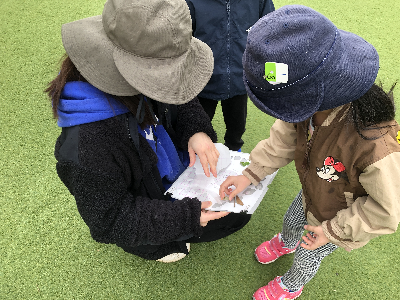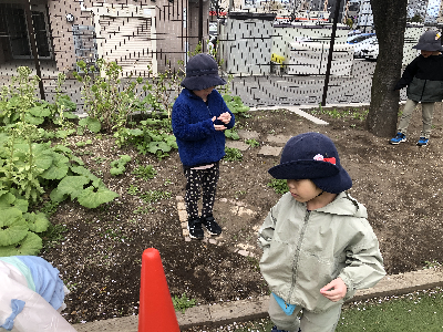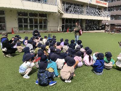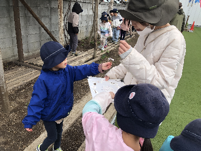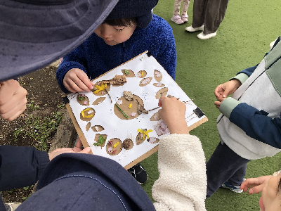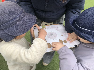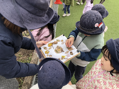 みんなの素敵な目で園庭のたくさんの春を探して回ります。