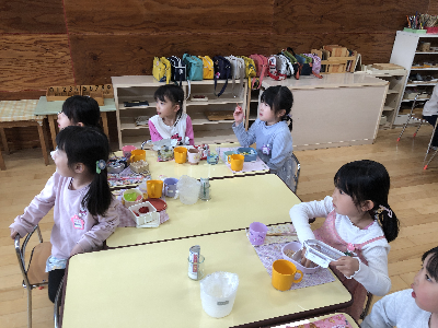 「お弁当はね、こうやって準備するよ!」とグループの先生に教えてもらいながら準備。