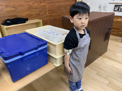 手を洗ってエプロンをして準備ばっちり!