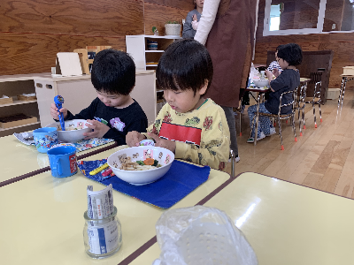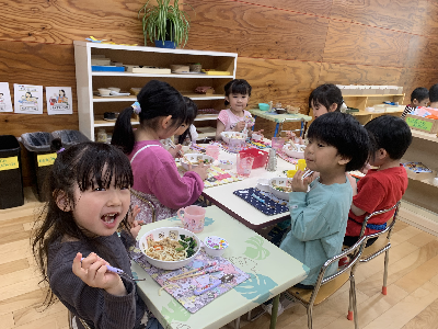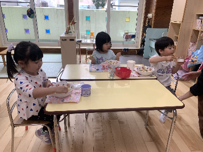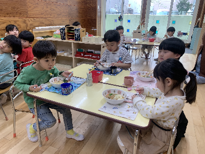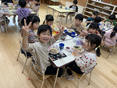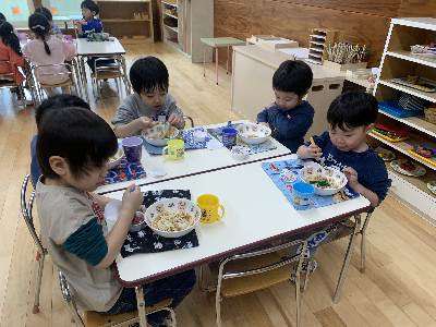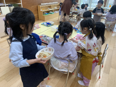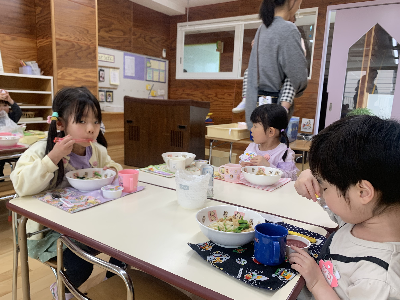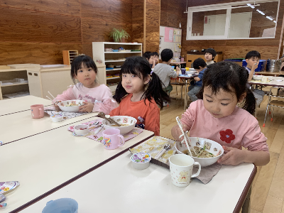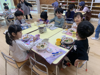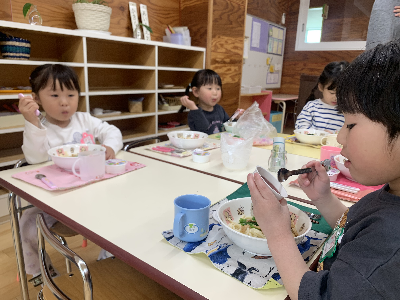 お昼が近づくと幼稚園の中は給食の良い匂いがただよいます!