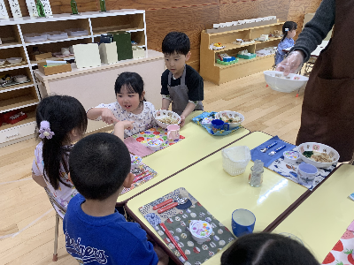 下に写っているのは、柏餅とちまきです。日本の行事に触れるきっかけにしています♪