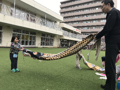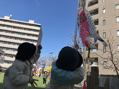 先週からは園庭に鯉のぼりもあがり、(八木さんに手伝ってもらい早朝保育のみんなであげました!)