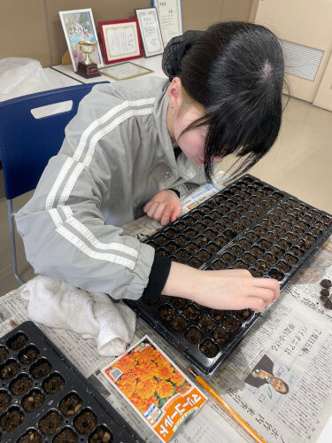 花フェスタや花壇造成に向けて、マリーゴールドの播種を行いました✨🌈