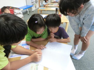 8月最後には、夏休みの思い出新聞を書いてもらいました。