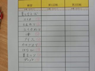 先生が好きそうなフルーツを考えて、ビンゴシートを埋めます。