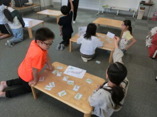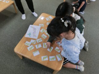 さくらキッズでは、国旗かるたや部首かるたなど、