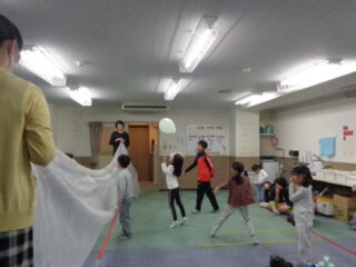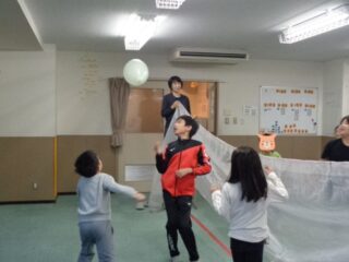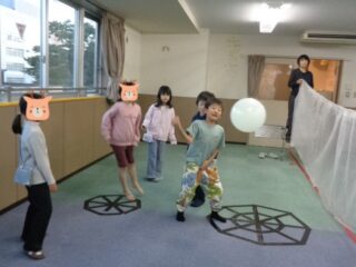 日頃からみんなで遊んでいる種目ではありますが、ネットがあると雰囲気が変わるようで風船を思うように相手コートに入れられない場面もありました💦