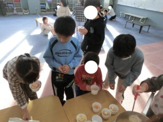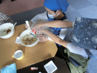 皆美味しい!と言いながら食べていて、おにぎりも豚汁もおかわりしたい子がたくさんいました!