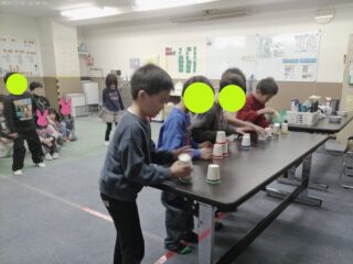 今日は先日行なった「キッズブレイン 紙コップリレー&背中ワード当てゲーム」