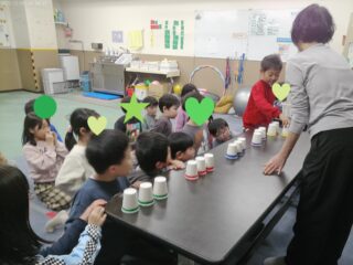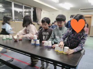 今日は先日行なった「キッズブレイン 紙コップリレー&背中ワード当てゲーム」