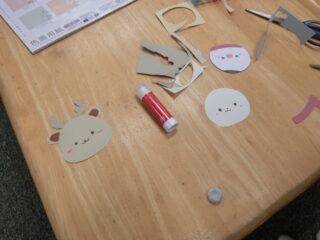 好きな絵柄を選んでもらい、ハサミで切り、顔を書いたり、デザインしていきます。