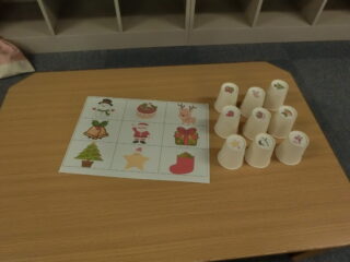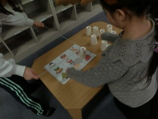 描いてある絵に合わせて、紙コップ裏に描いてある絵を合わせて置いていくゲームです(*'▽')