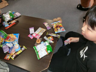 保護者様からの寄付のお菓子がいつもたくさんいただくので、今年は少し少なくなってしまいましたがみんな楽しんで