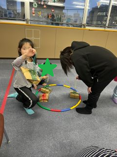 ダジャレです(笑)釣り堀のようなところにクリスマスプレゼントを置き、狙いのプレゼントを釣っていただきました✌️💕