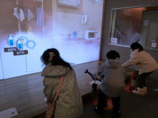 防災センターでは地震体験、暴風体験、煙避難体験、消火体験等々…