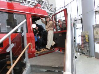 防火衣を着てみたり、はしご車に乗ってみたりも…!皆、興味津々でした🧑🏻🚒