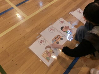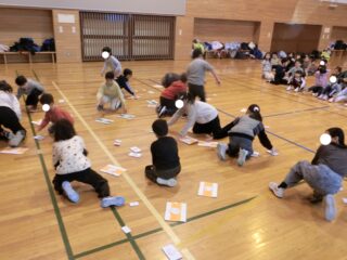 箱の中からにんじんが描かれた紙を探し出してリレーをするゲームです!