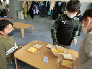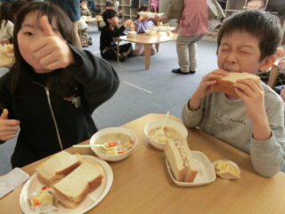 今回は3年生以上がシチュー作り、1~2年生はサンドウィッチ作りをしてもらいました🍞🥘