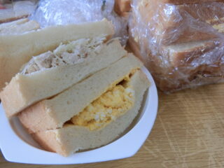 サンドウィッチは、卵サンドと胸肉のサンドを作りました!
