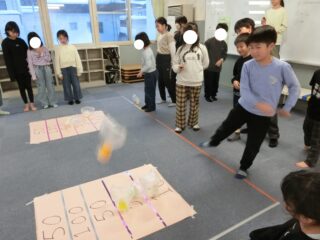 最後は自分の歳の数だけ鬼の入れ物に豆を入れるリレーです!