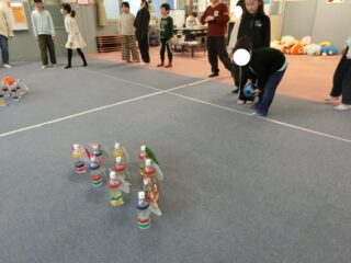 ボール等と違い、ふわっと飛ばす必要があるので、投げる角度が大事・・・!