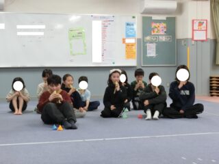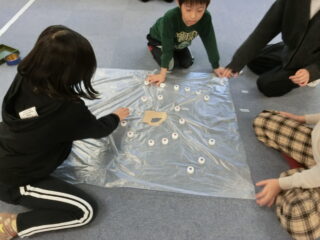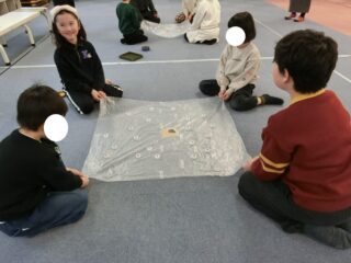 低学年と高学年で身長差もあるので、どのくらいの角度で傾けたら良いかをお互いに伝えながら協力していました😸