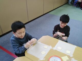 最後に余った材料でチーズせんべいを作りましたが、こちらも大好評でした♪