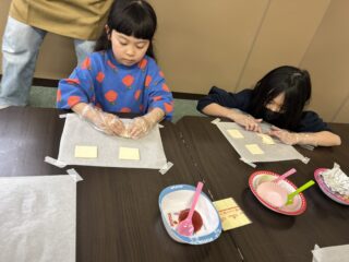 包むときに星型や餃子型のように工夫して包んでいる子がおり、子どもたちの独創性を感じました!