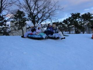 今回は学校帰りの平日のイベントになり、子供達もそりを持参できない為、職員で子供達が楽しめるように米そりをたくさん作りました🛷🛷