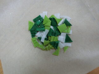ペットボトルのキャップを細かく切り、いろんな色を組み合わせたりしてアイロンで溶かしていきます😲