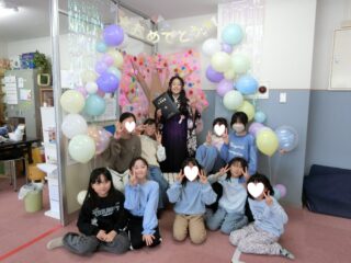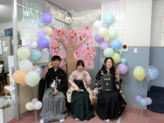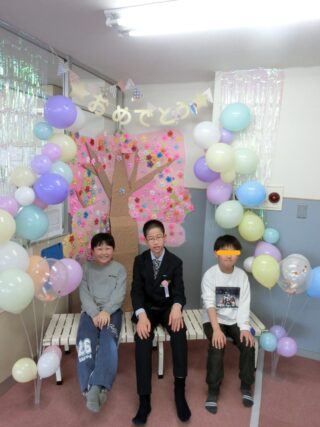 卒業生の為に職員がコツコツと準備していたフォトスポットでみんな記念撮影をしました!!