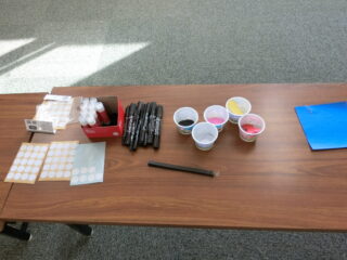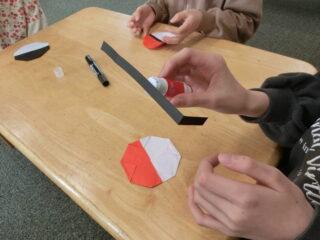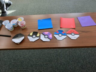 モンスターボールのパーツは色に寄って違うので、事前に用紙して作ってもらいました。