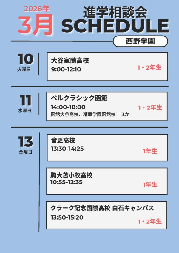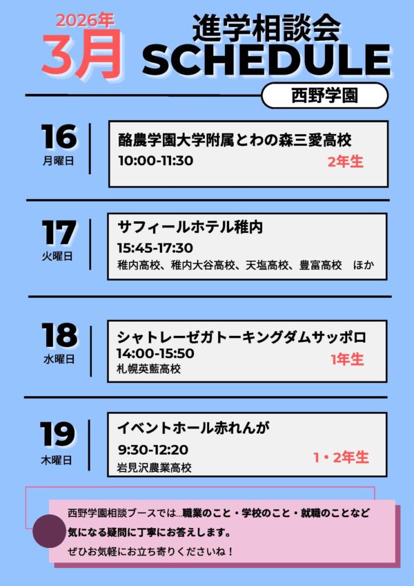 【2026年3月】西野学園 進学相談会のお知らせ📅✨道内各地で参加!